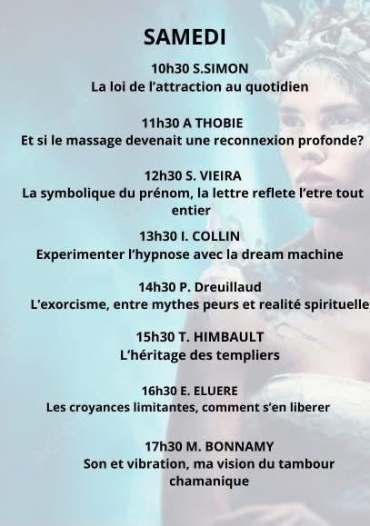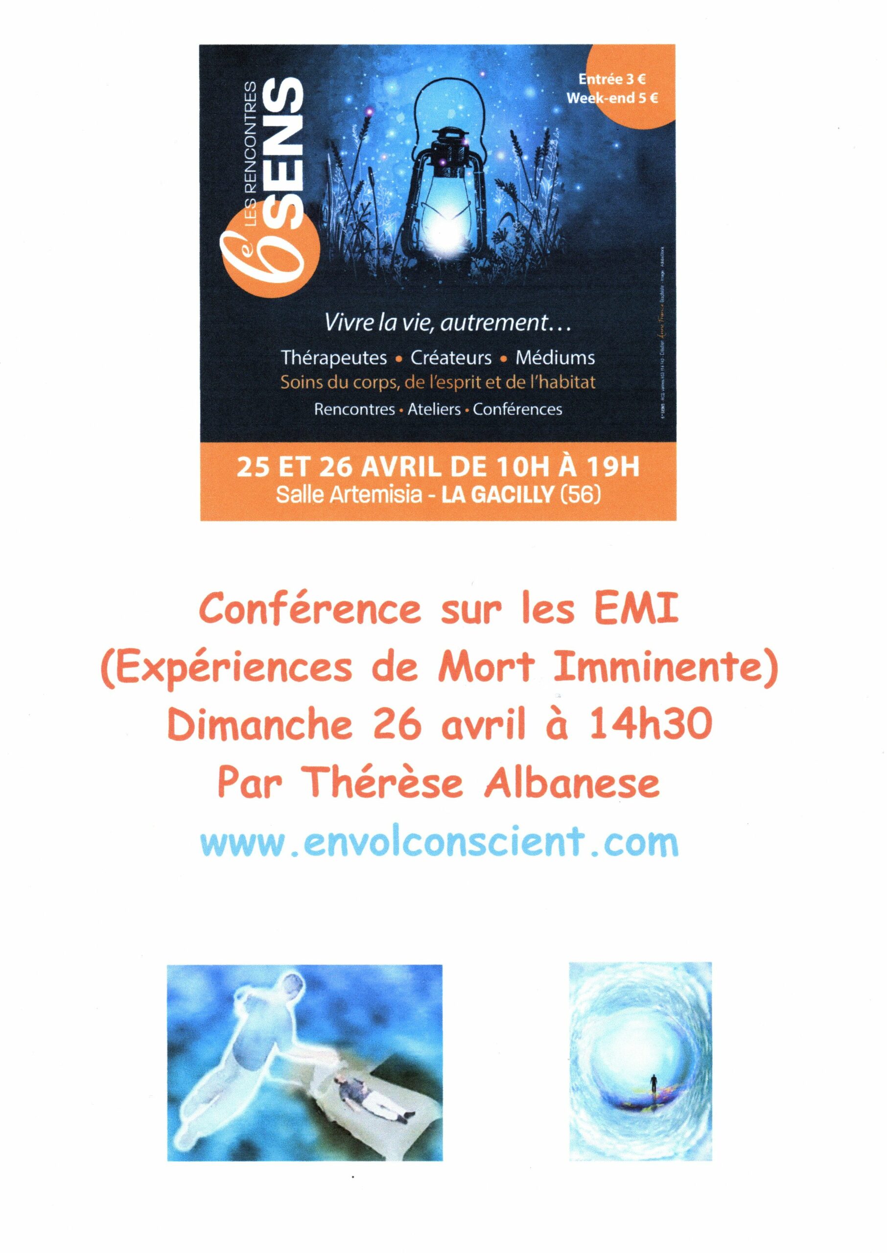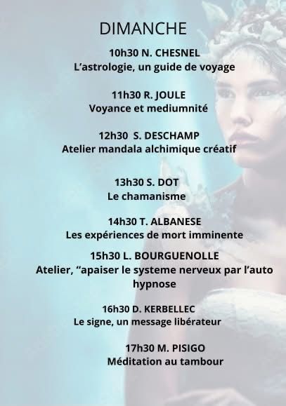 Dimanche à 14h30, j’aurai le plaisir d’animer une conférence pour vous raconter mon expérience, vous parler également de la vie après la vie et je répondrai à vos questions.